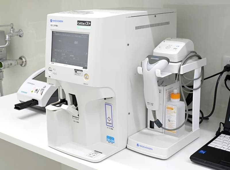 血液の生成分を測定し、病気の診断や治療効果の判定を行う装置です。