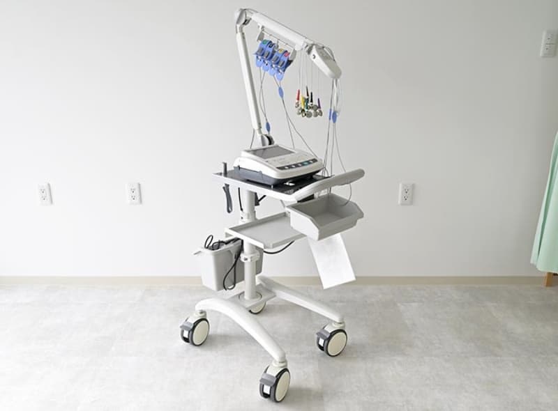 心臓が動くときに発生する微弱な電気信号を波形として記録し、心臓の状態を調べます。