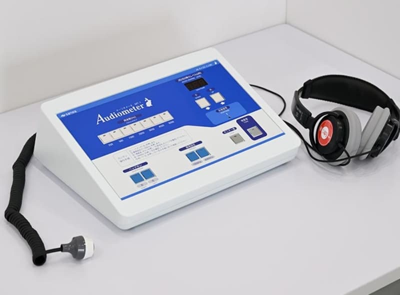 さまざまな周波数の音を出し、聞こえる最小の音量を測定することで、聴力の状態を調べます。